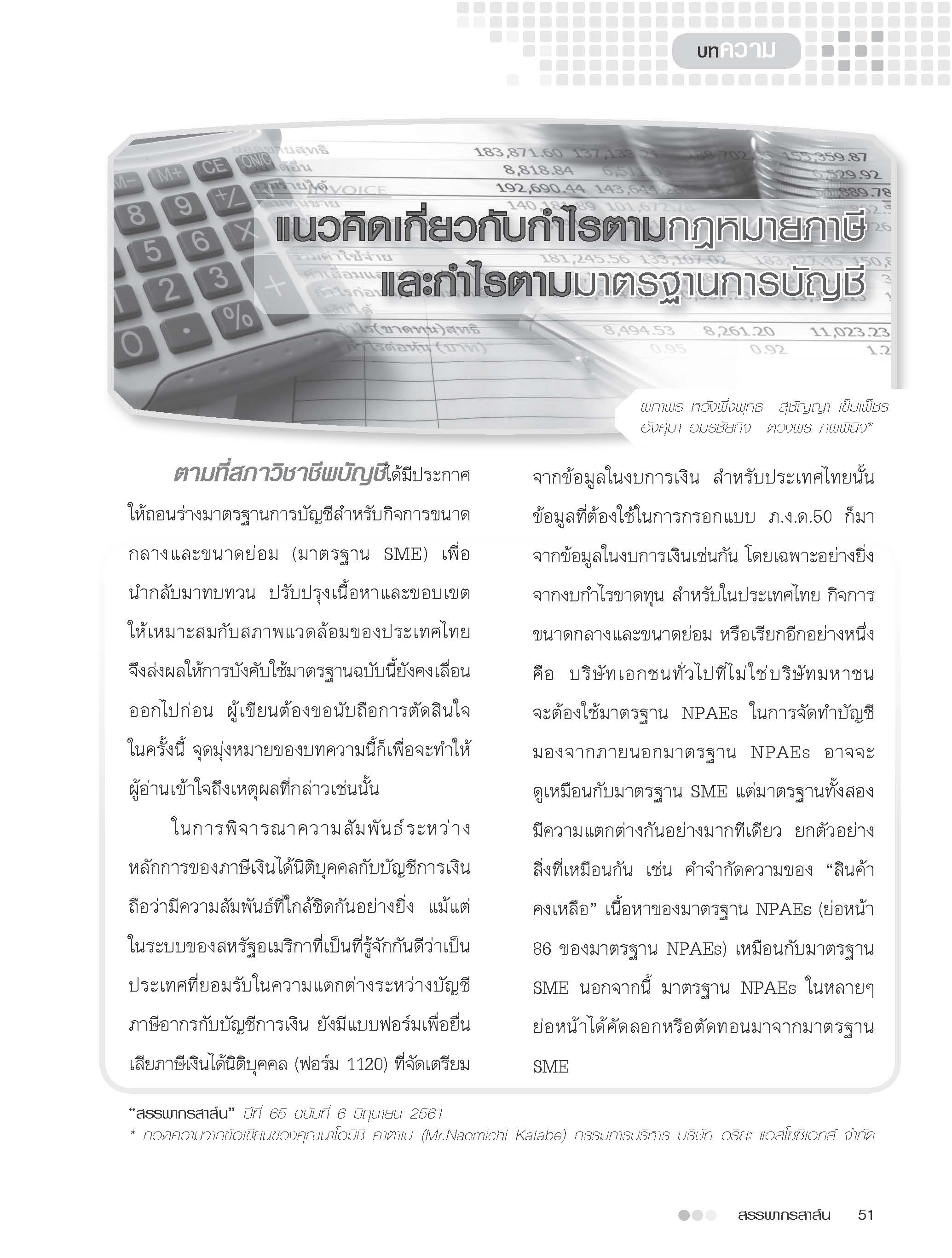 บทความ ... แนวคิดเกี่ยวกับกำไรตามกฎหมายภาษี และกำไรตามมาตรฐานการบัญชี