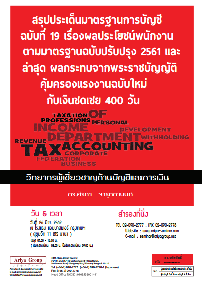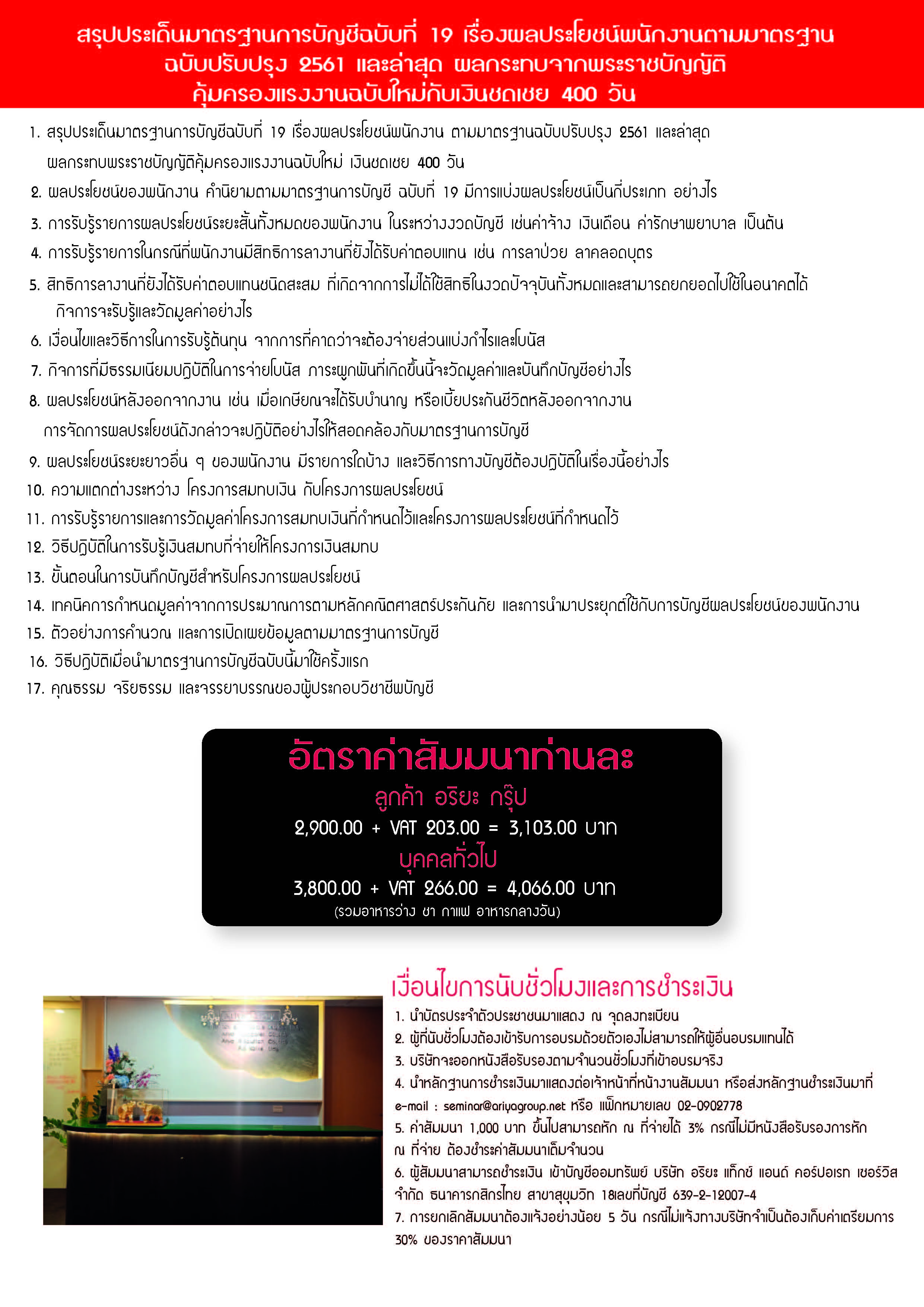 1. สรุปประเด็นมาตรฐานการบัญชีฉบับที่ 19 เรื่องผลประโยชน์พนักงานตามมาตรฐานฉบับปรับปรุง 2561 และล่าสุด ผลกระทบจากพระราชบัญญัติคุ้มครองแรงงานฉบับใหม่ กับเงินชดเชย 400 วัน