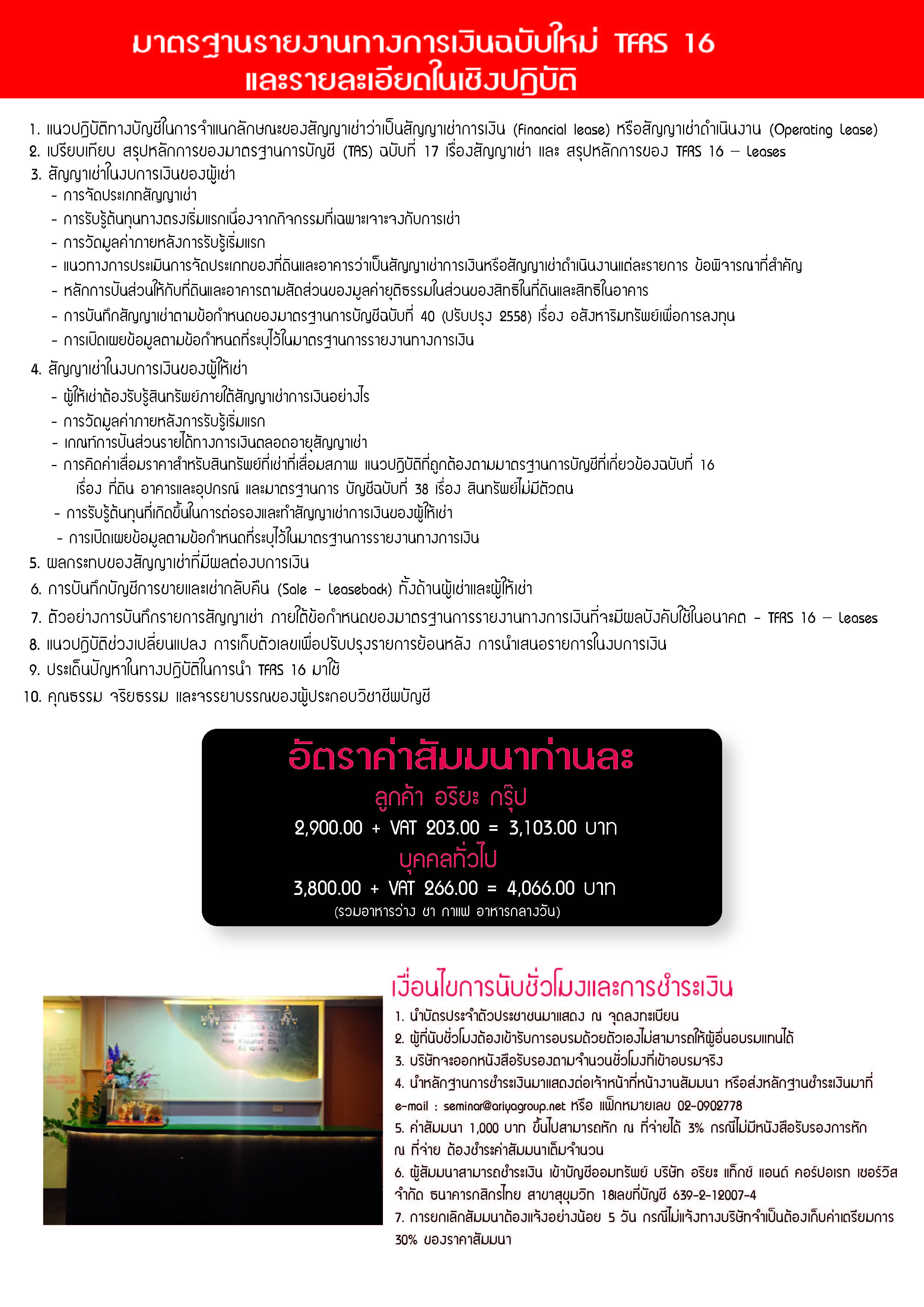 สํารองที่นั่งทางเวปไซต์ http://www.ariya-seminar.com/index.php หรือ