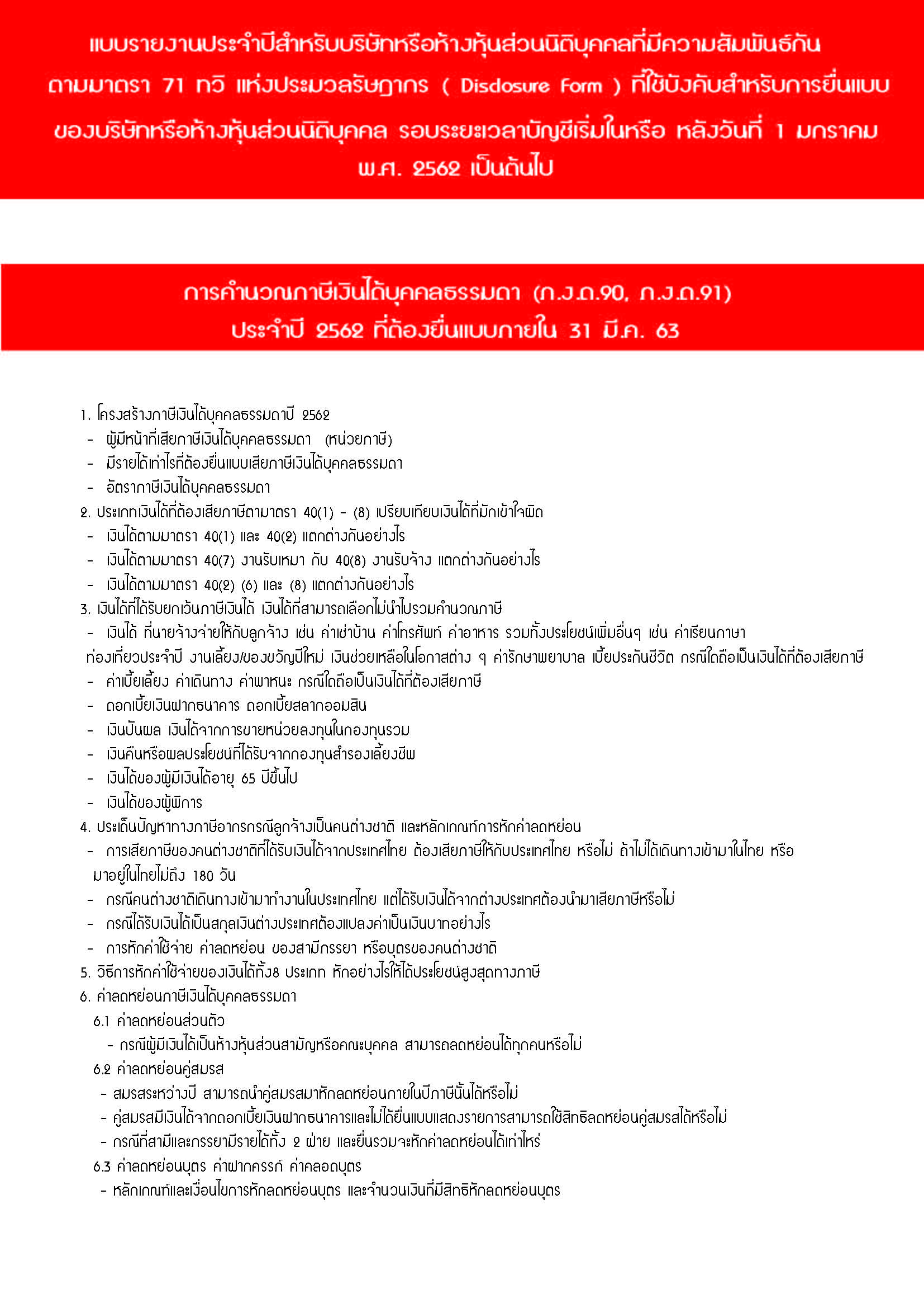 แบบรายงานประจำปีสำหรับบริษัทที่มีความสัมพันธ์กัน ตามม.71 ทวิ (Disclosure Form) และภาษีเงินได้บุคคลธรรมดาประจำปี 2562 ที่ต้องยื่นแบบภายใน 31 มี.ค. 63