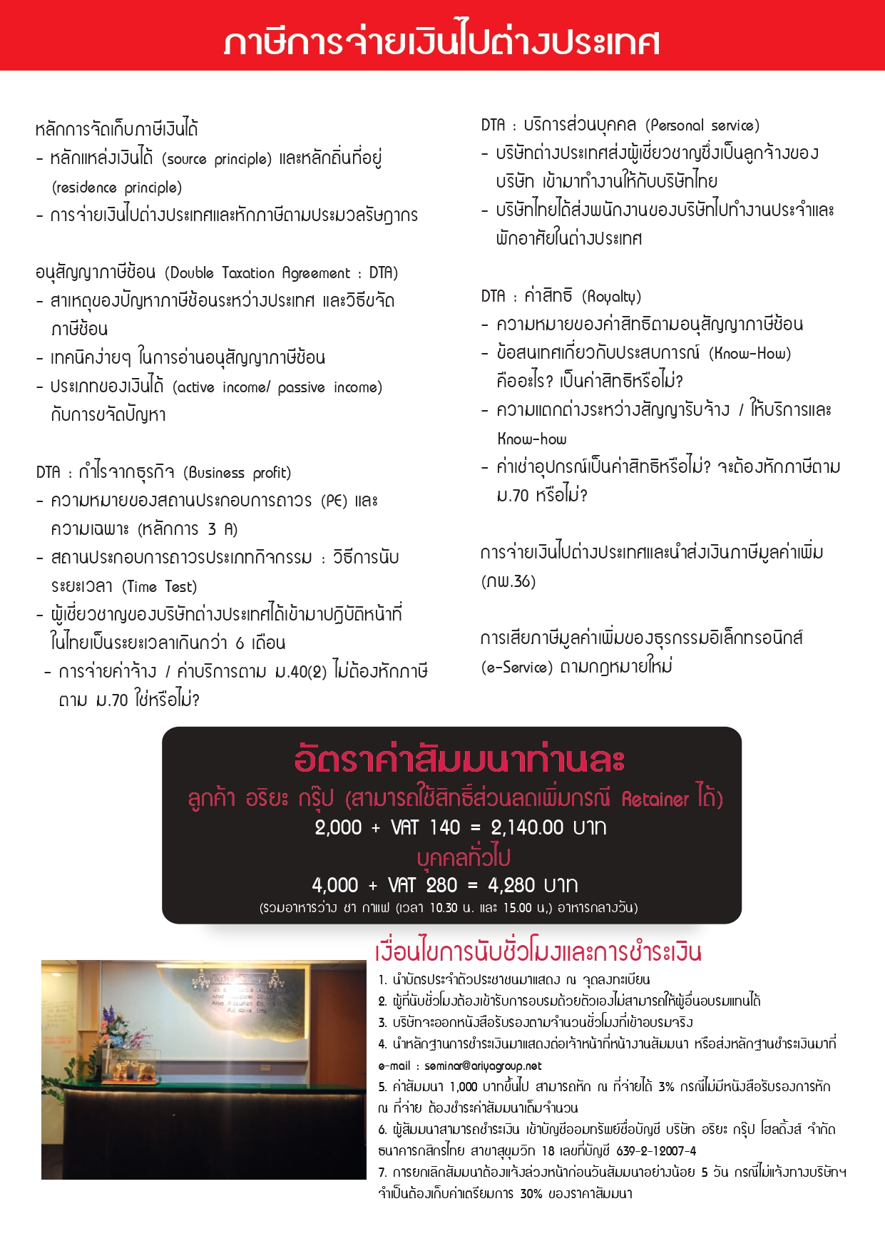 สํารองที่นั่งทางเวปไซต์ http://www.ariya-seminar.com/index.php หรือ