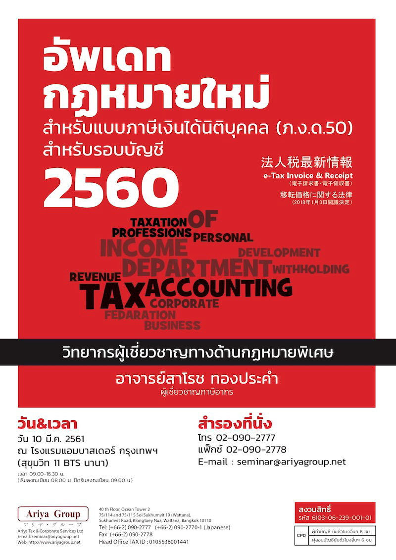 อัพเดทกฎหมายใหม่ สําหรับแบบภาษีเงินได้นิติบุคคล(ภ.ง.ด.50)สําหรับ รอบระยะเวลาบัญชี 2560